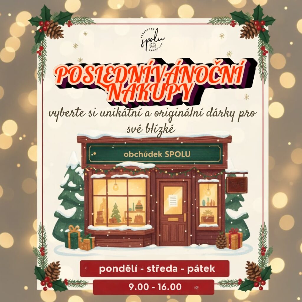 Pokud ještě sháníte vánoční dárky a chcete udělat svým blízkým radost originálním kouskem, teď je ten správný čas. Komunitní centru s obchůdkem pro dobrou věc najdete v psaníčkovém domě na Masarykově náměstí v Pelhřimově. V nabídce jsou keramika, svíčky, šperky, dekorace, ručně vyráběná mýdla i další originální dárky, které jinde nenajdete. Každým nákupem navíc podporujete dobrou věc a činnost Domova Jeřabina. Vyrazit můžete nejen za nákupy, ale také za příjemnou atmosférou. Jistě vhod přijde také výborná káva a drobné občerstvení. Společný čas lze strávit rovněž s klienty Domova Jeřabina. Otevřeno je v pondělí, středu a pátek od 9:00 do 16:00. Posledním letošním otevíracím dnem je pátek 19. prosince. Od 22. prosince do 9. ledna bude v Komunitní centrum s obchůdkem pro dobrou věc uzavřeno a znovu se otevře v pondělí 12. ledna 2026. Aktivity a nabídku Komunitního centra s obchůdkem pro dobrou věc můžete sledovat na facebookové stránce / https://www.facebook.com/obchudekSPOLU a také na webu https://obchudek-spolu.webnode.cz.